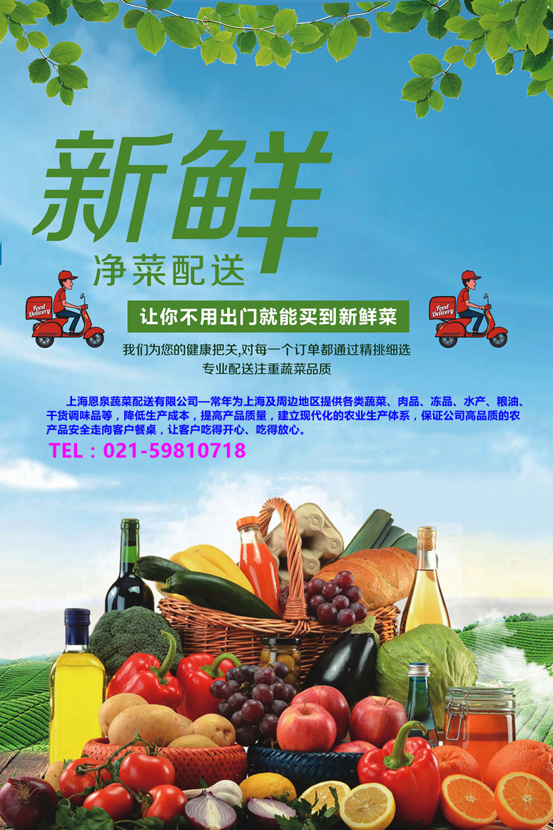 公司以合理的市场批发价为客户配送大米、粮油、调料、瓜果、蔬菜、肉类、冻品及海产品等。 恩泉蔬菜配送向客户承诺: